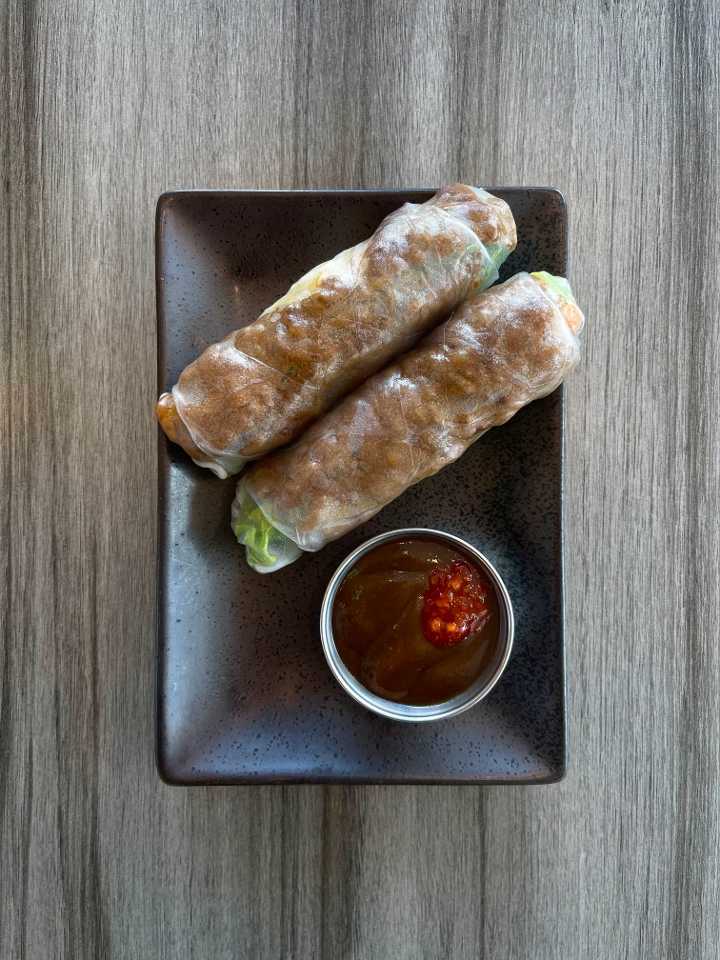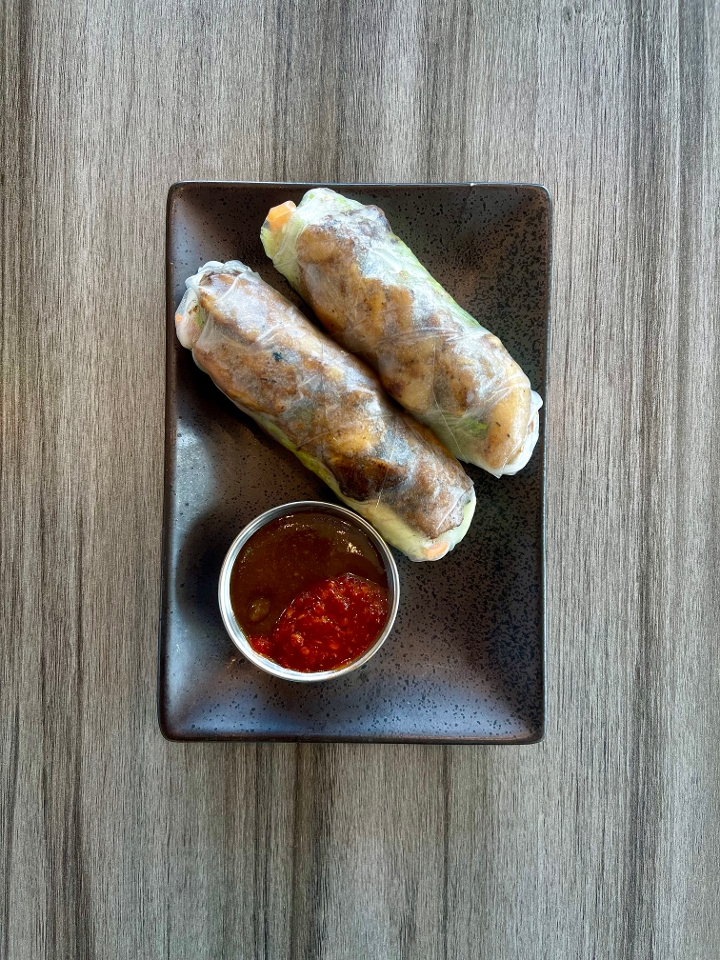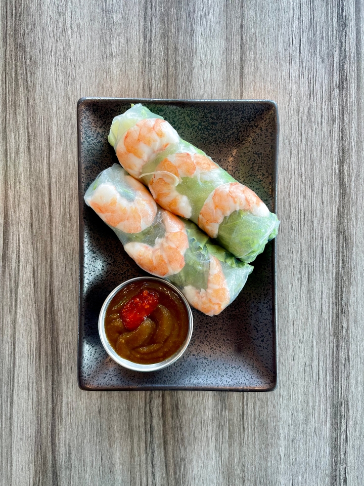Fresh rice paper rolls filled with vermicelli noodles, crisp herbs, and your choice of shrimp or tofu. Served with house peanut sauce.