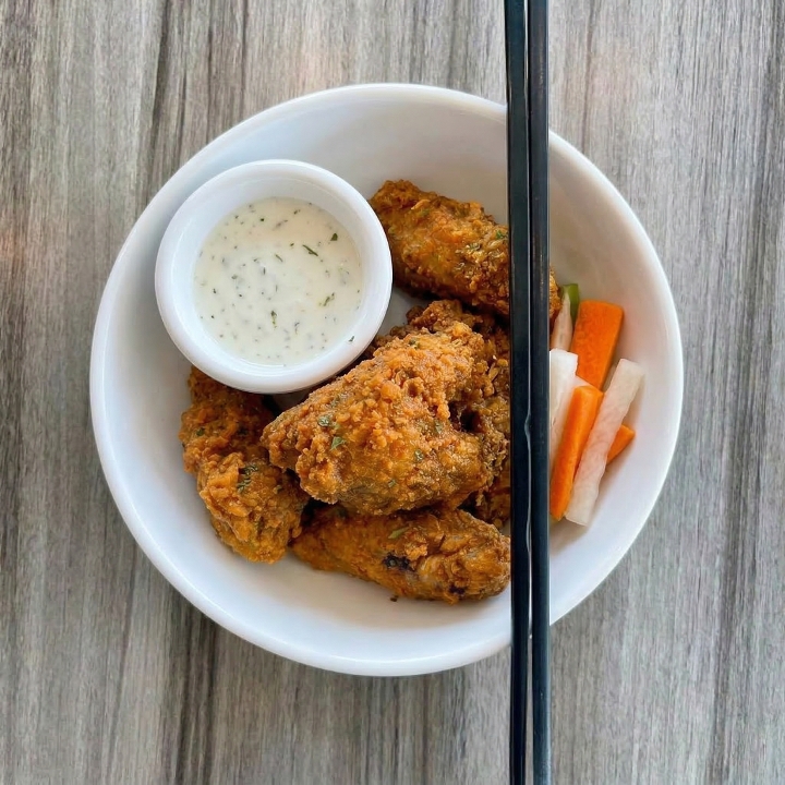 Crispy fried wings tossed in your choice of traditional nước mắm (Vietnamese fish sauce glaze) or garlic butter.