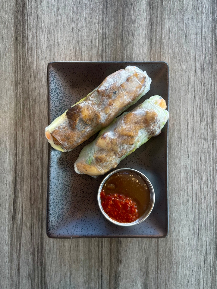 Fresh rice paper rolls with grilled chicken, vermicelli noodles, and herbs. Served with house peanut sauce.